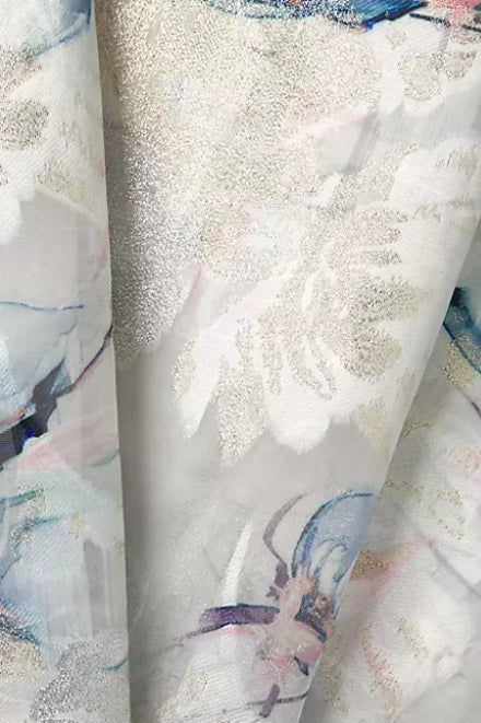 • A blend of polyester and metallic threads creates a textured, shimmering effect.