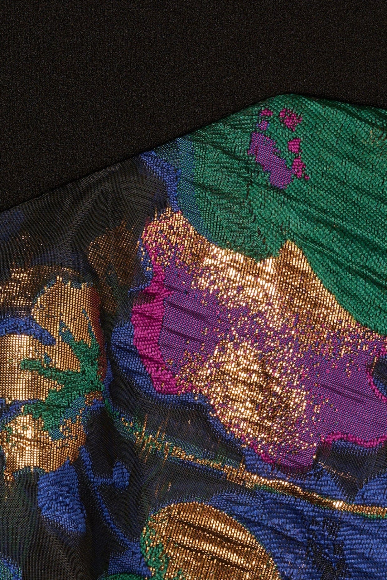 The one-shoulder neckline creates an effortlessly chic silhouette, while the floral jacquard fabric exudes opulence. Its asymmetrical drop waist transitions into tiered layers, adding a sense of drama and movement to the gown. Designed with attention to detail, this piece promises to make you the center of attention at any event.