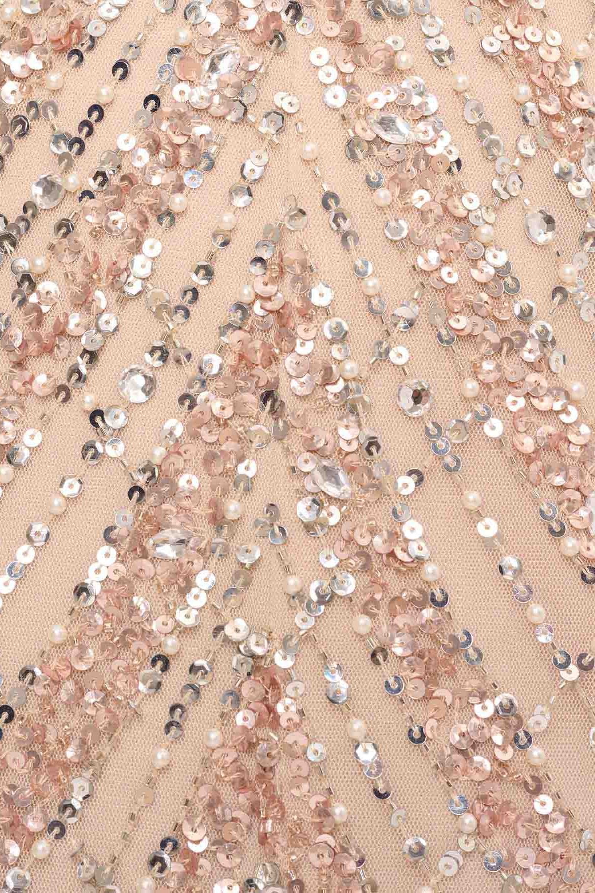 • The intricate embellishments on the mesh fabric add a touch of sparkle and sophistication.