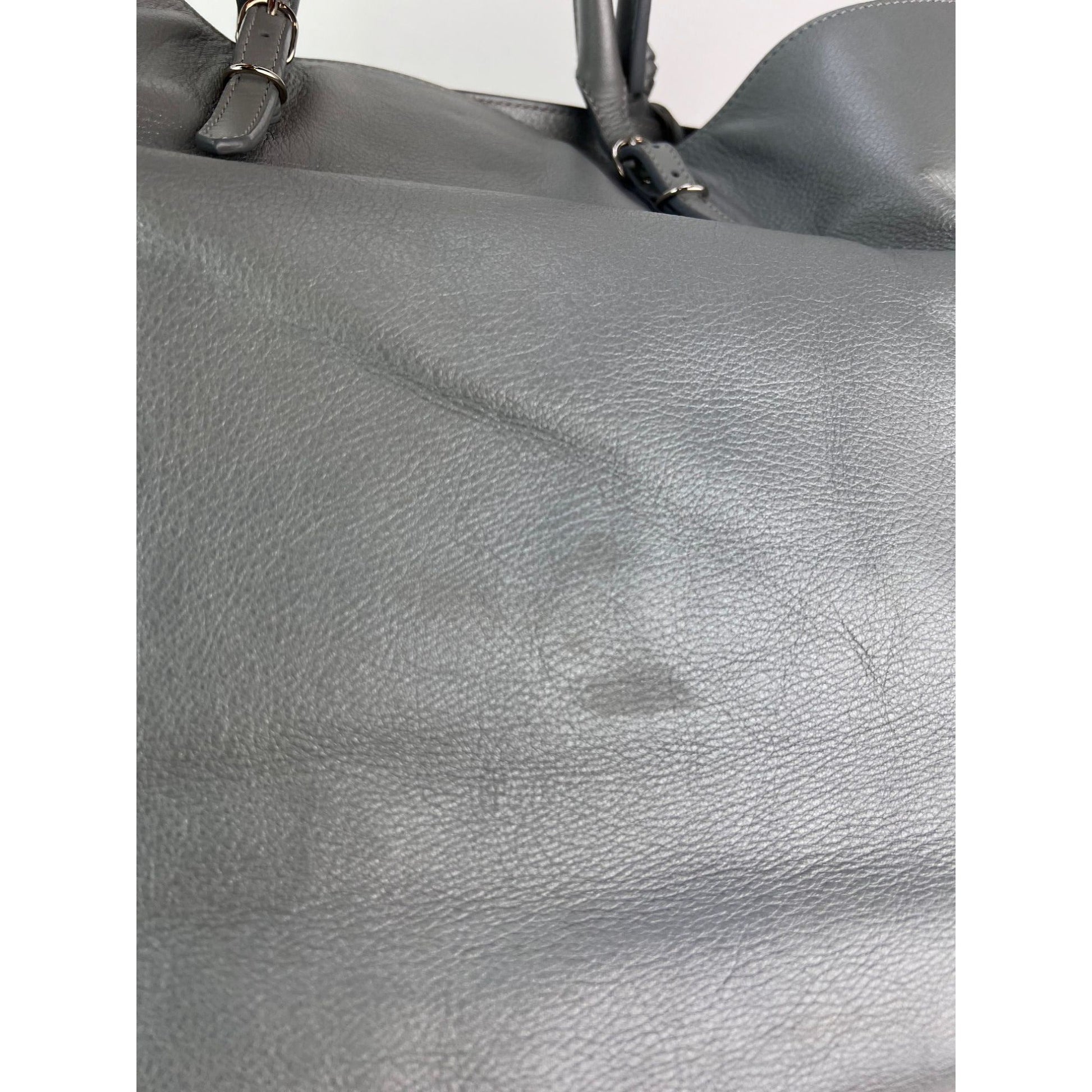 INTERIOR: grey suede and leather tiny black mark near bottom,