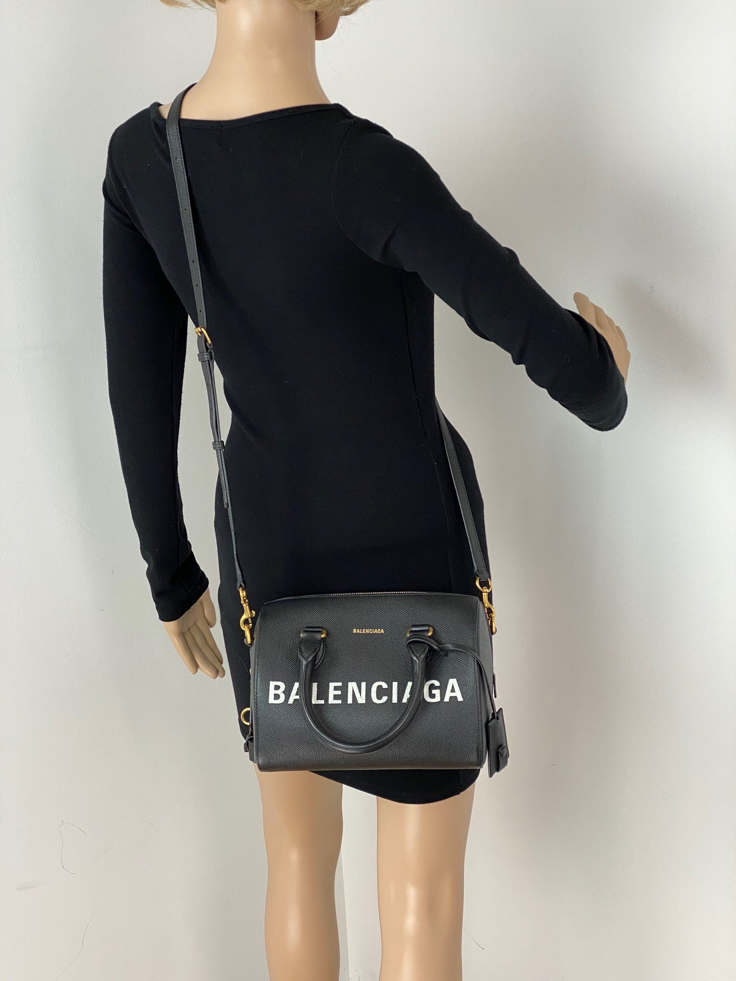 Balenciaga Ville Bowling Small Black Grained Leather Satchel Crossbody Bag