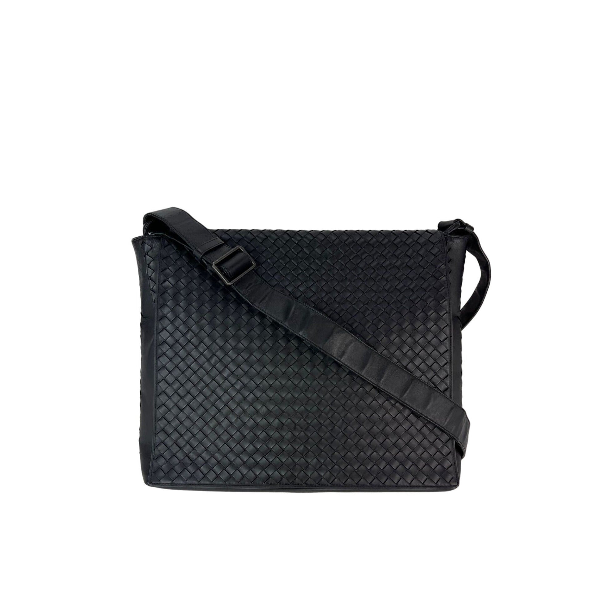 Bottega Veneta Intrecciato  Black Leather Messenger Bag