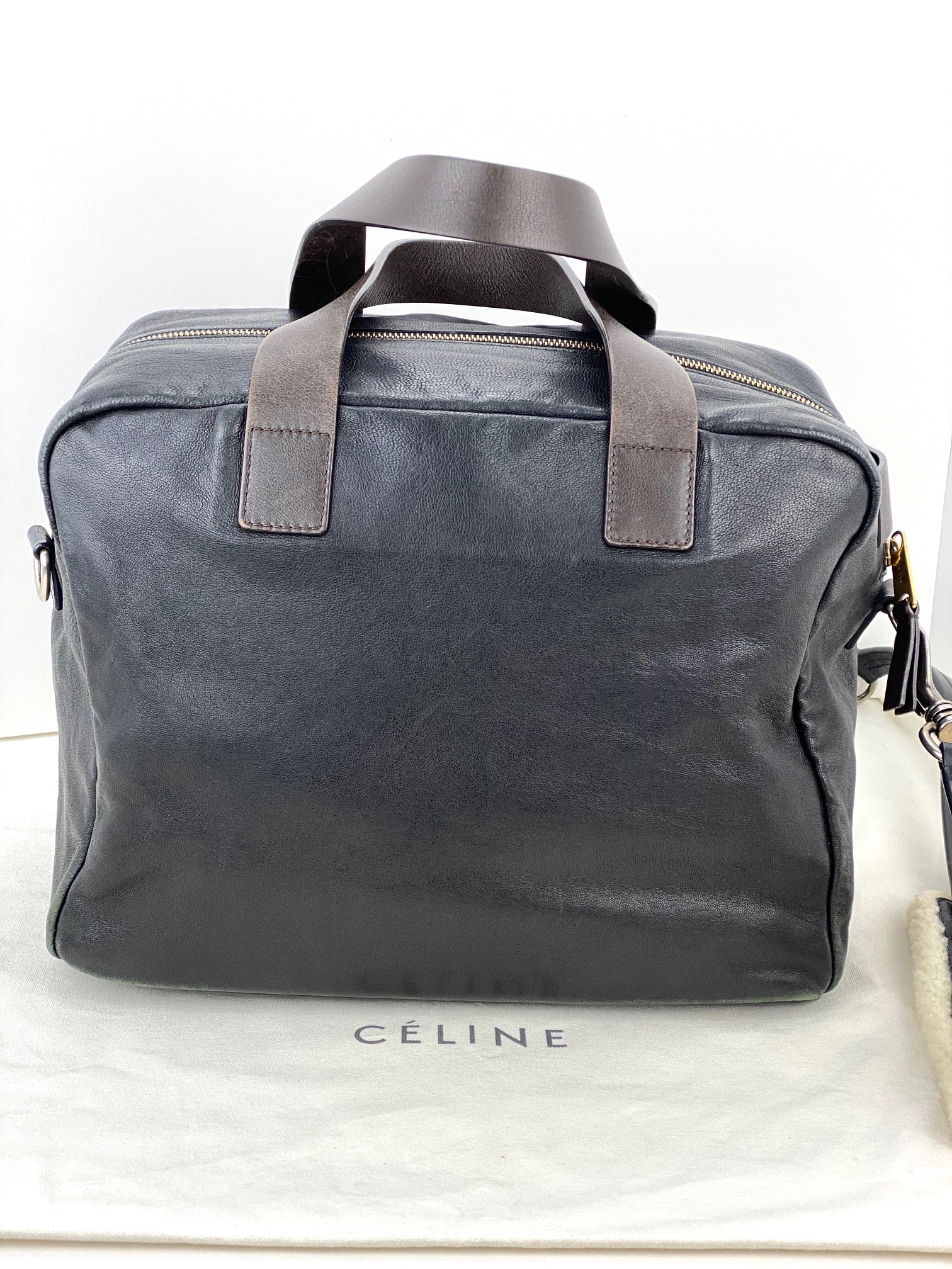 Celine Black Leather Handle Bag Vintage Briefcase messenger Bag
