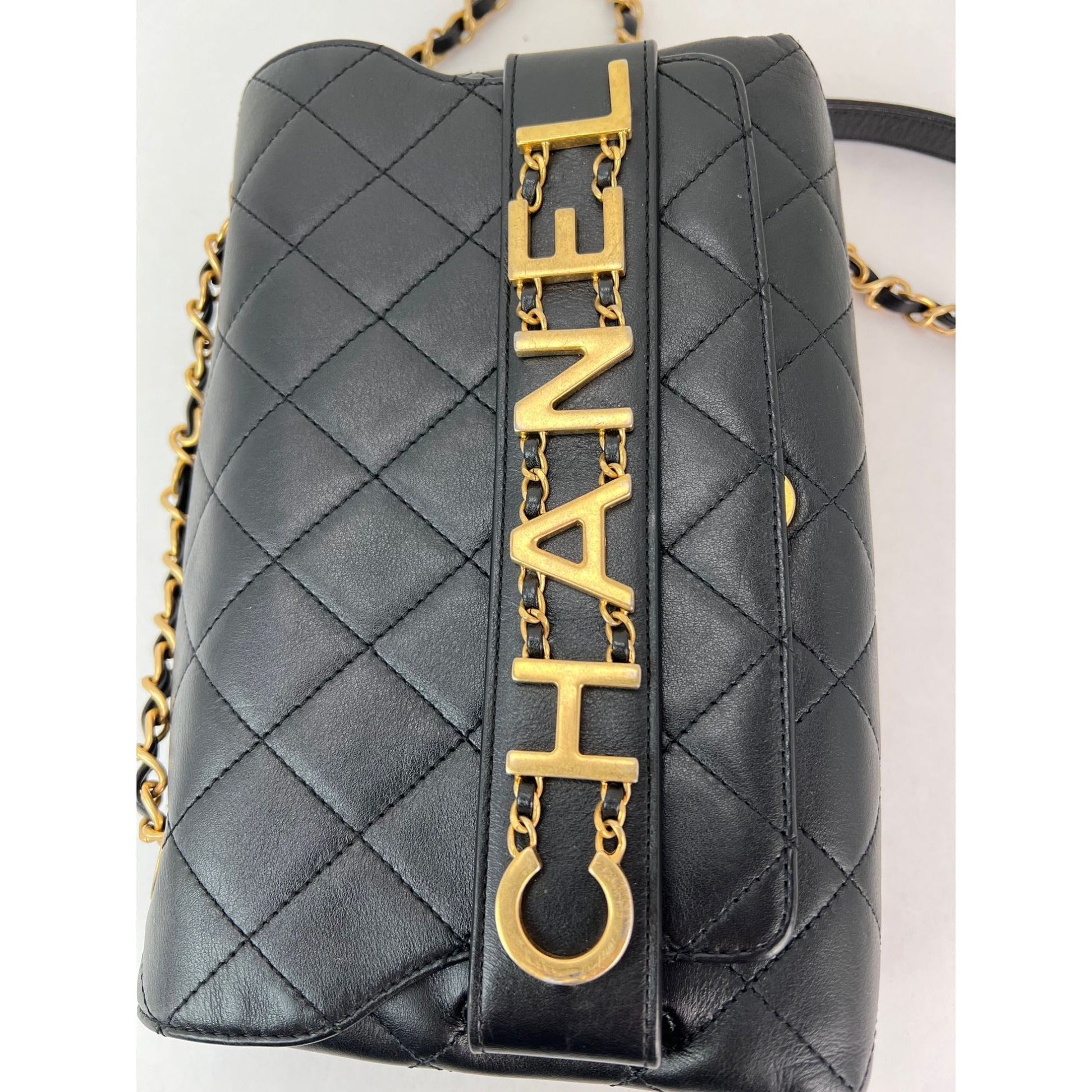 Chanel Calfskin Quilted Enchained Black Flap Shoulder Bag