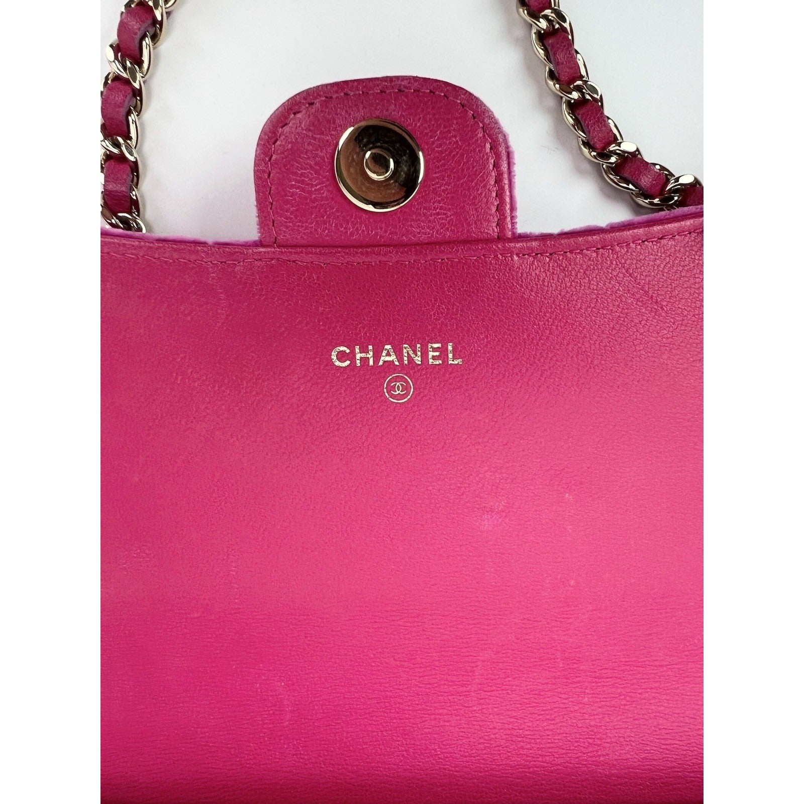 Chanel Velvet Quilted Timeless Fuchsia Wallet on a Chain Clutch Bag