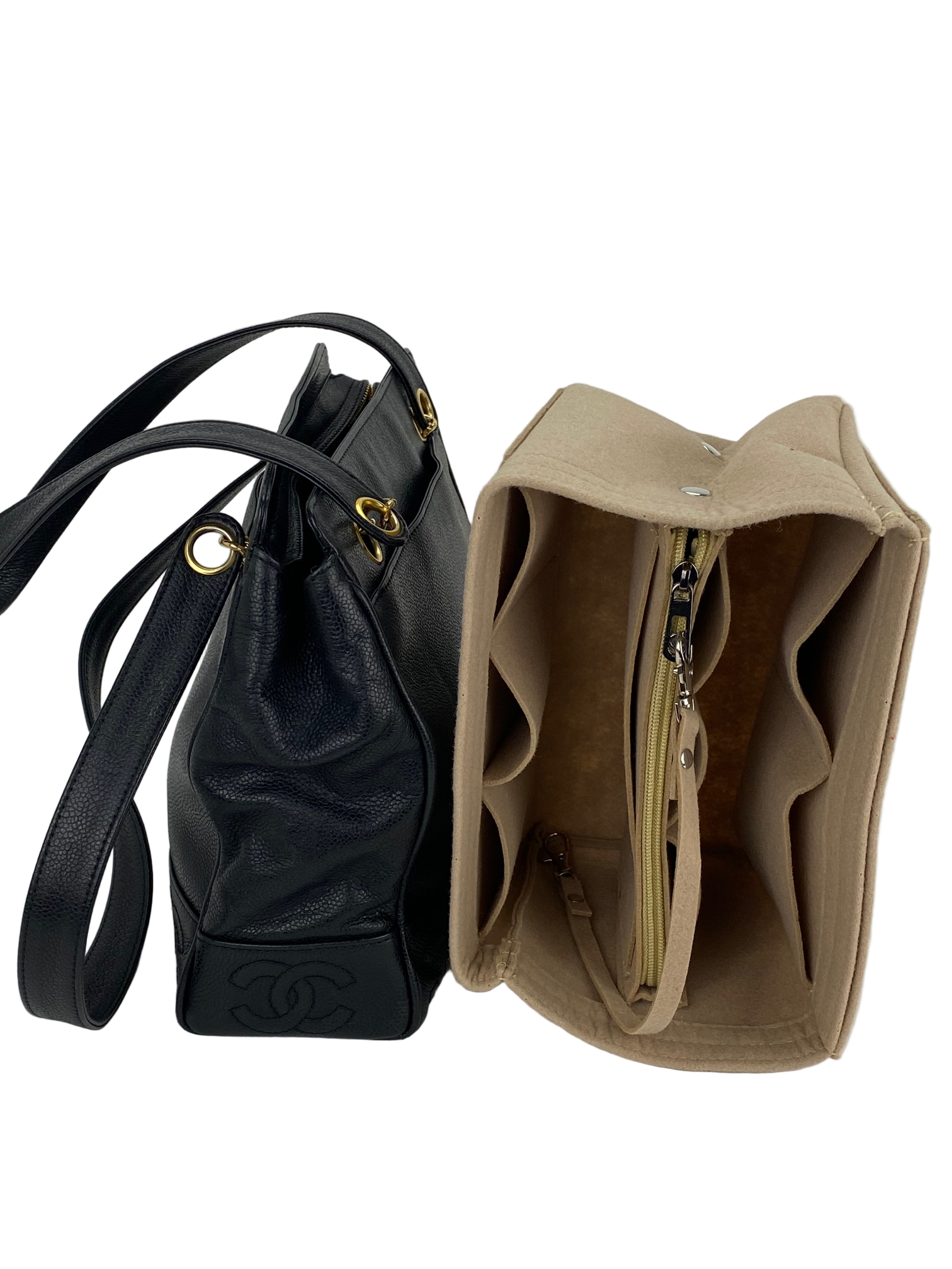 CHANEL Vintage Black Caviar Leather CC Zip Tote Shoulder Bag w/added insert Pre owned
