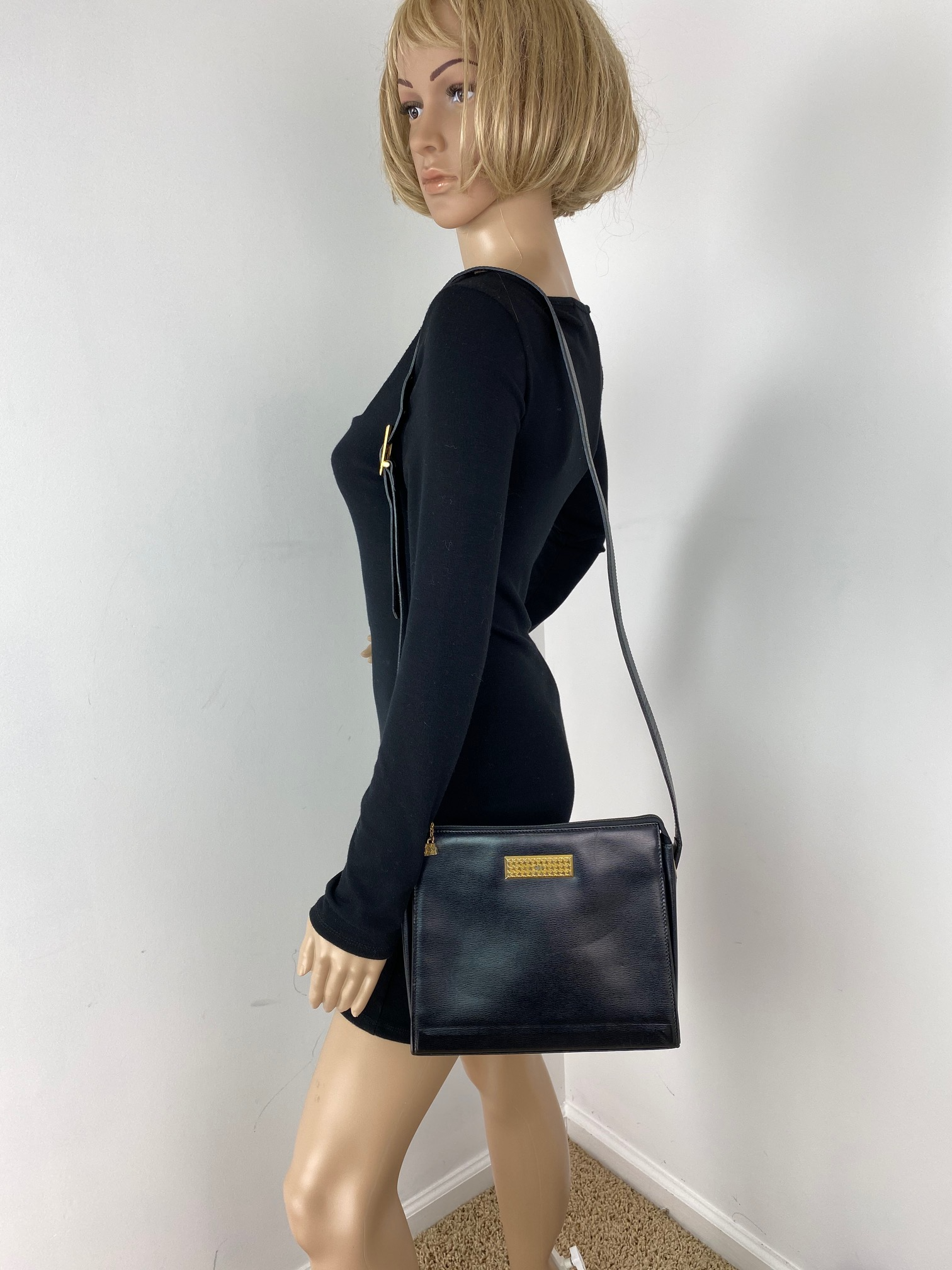 CHRISTIAN DIOR Black Leather Adjustable Shoulder Bag Authentic Pre owned