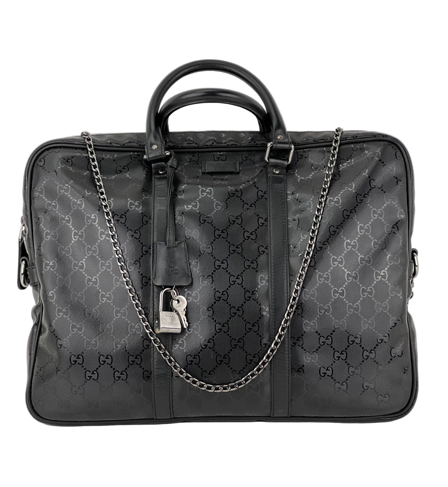 Gucci Briefcase GG Imprime Coated Canvas Black Monogram Business Bag Preowned