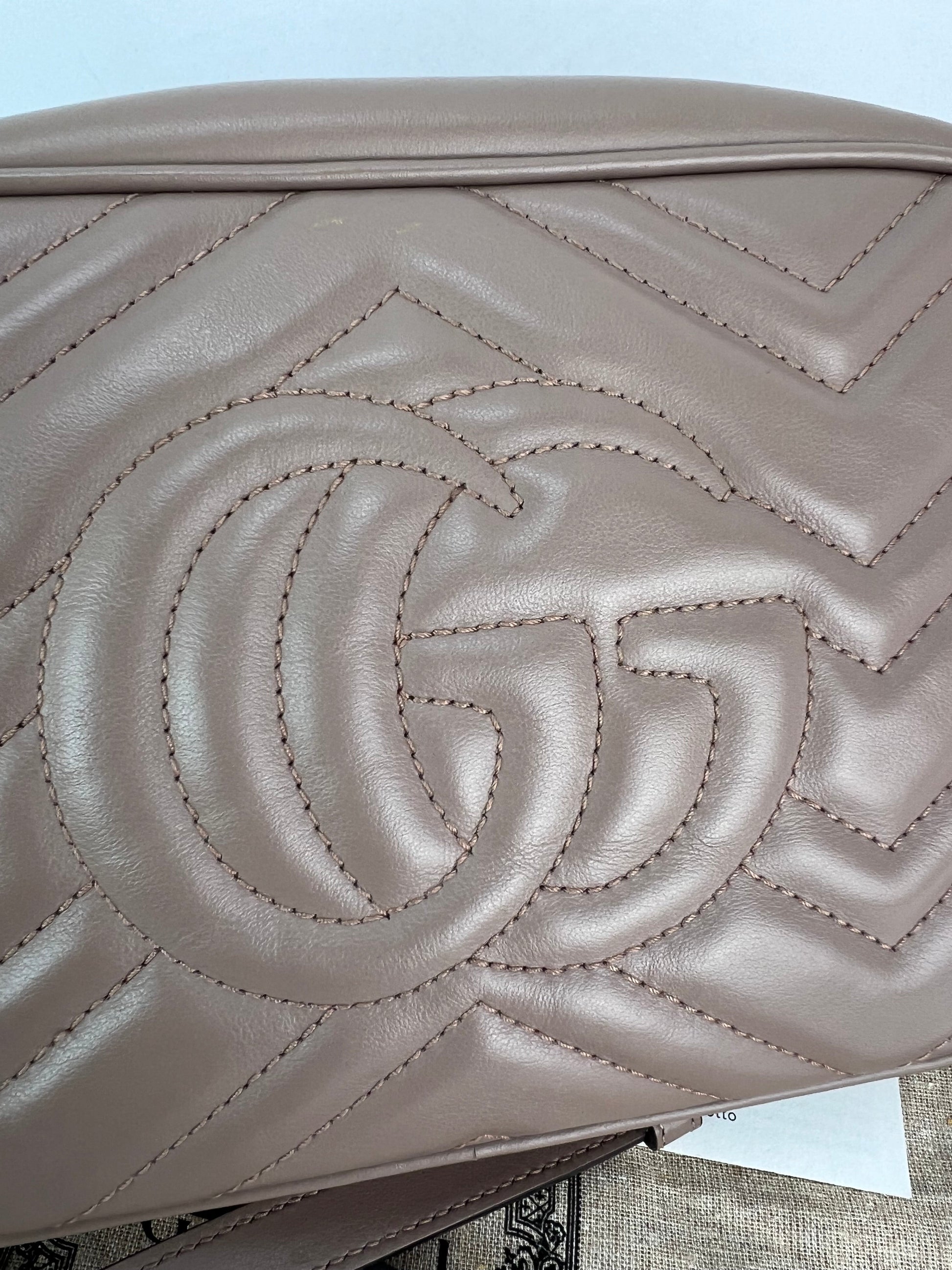 Gucci GG Marmont Small Chain Beige Matelasse Leather Crossbody Bag