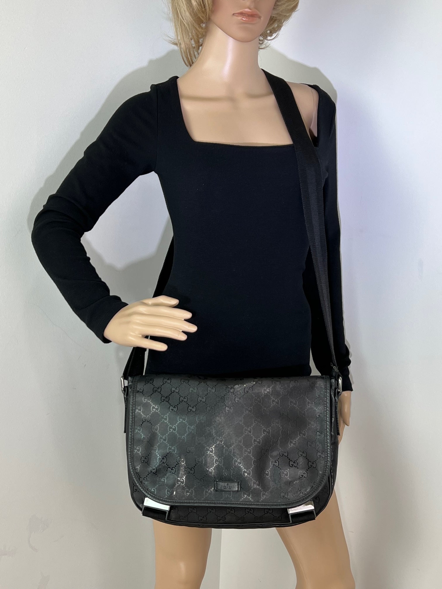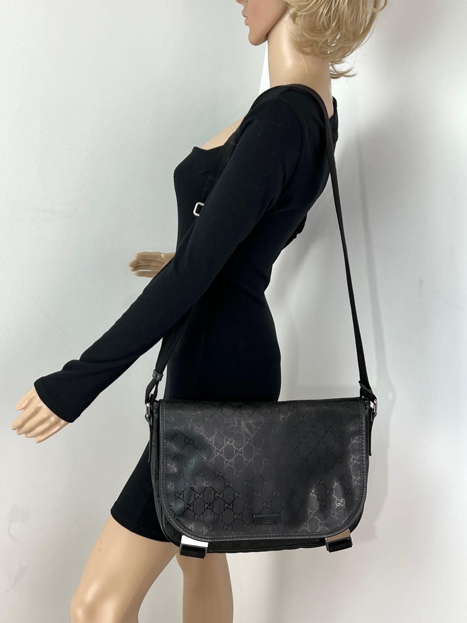 Gucci Men's Messenger GG Supreme Canvas Double Buckle Flap Crossbody Men's Bag