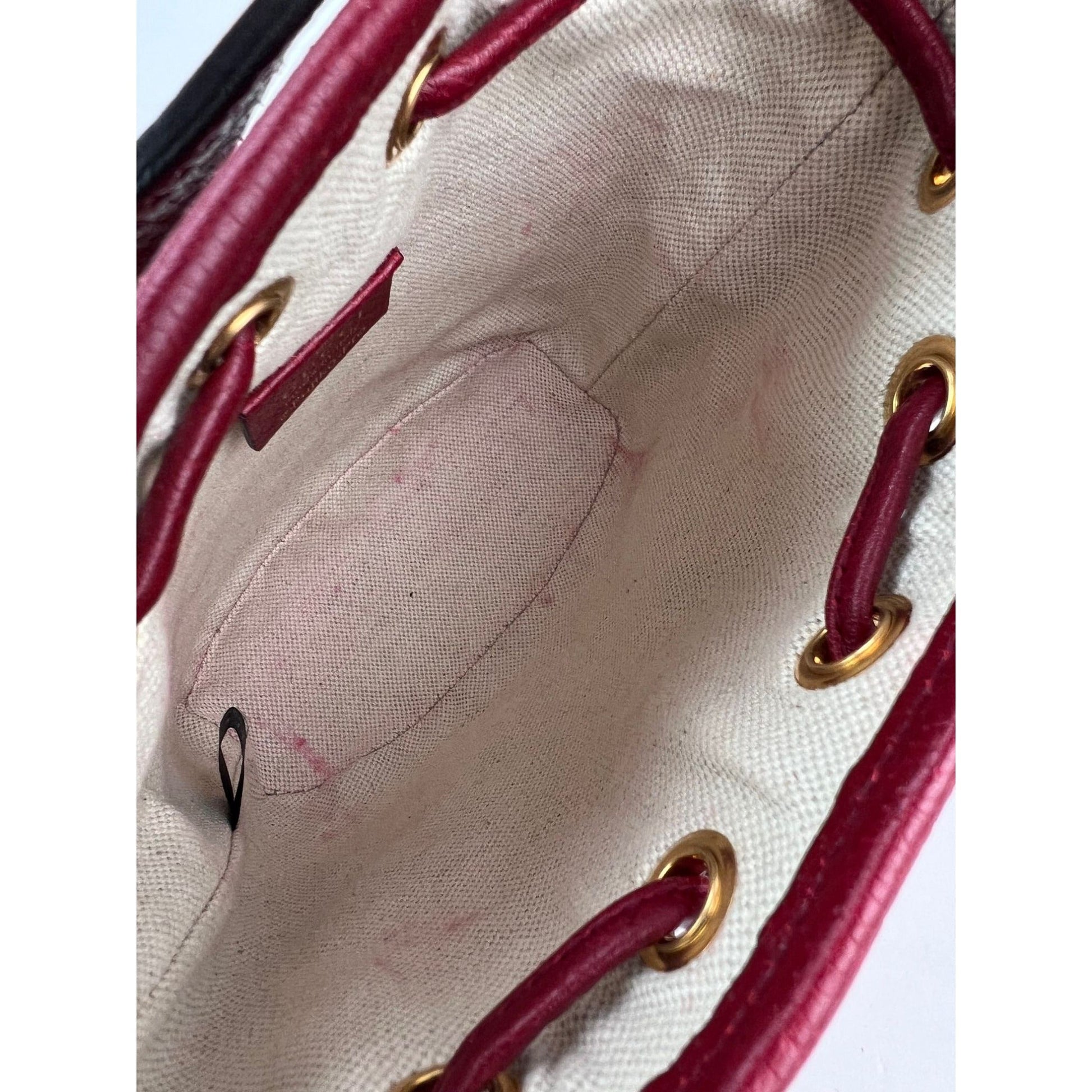 INTERIOR: beige canvas, has faint red marks on bottom and