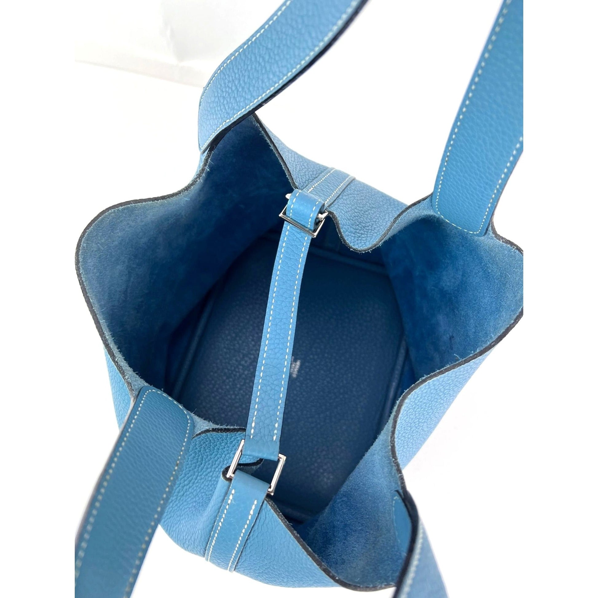 Hermes Taurillon Clemence Picotin 22 MM Blue Leather Hand Bag
