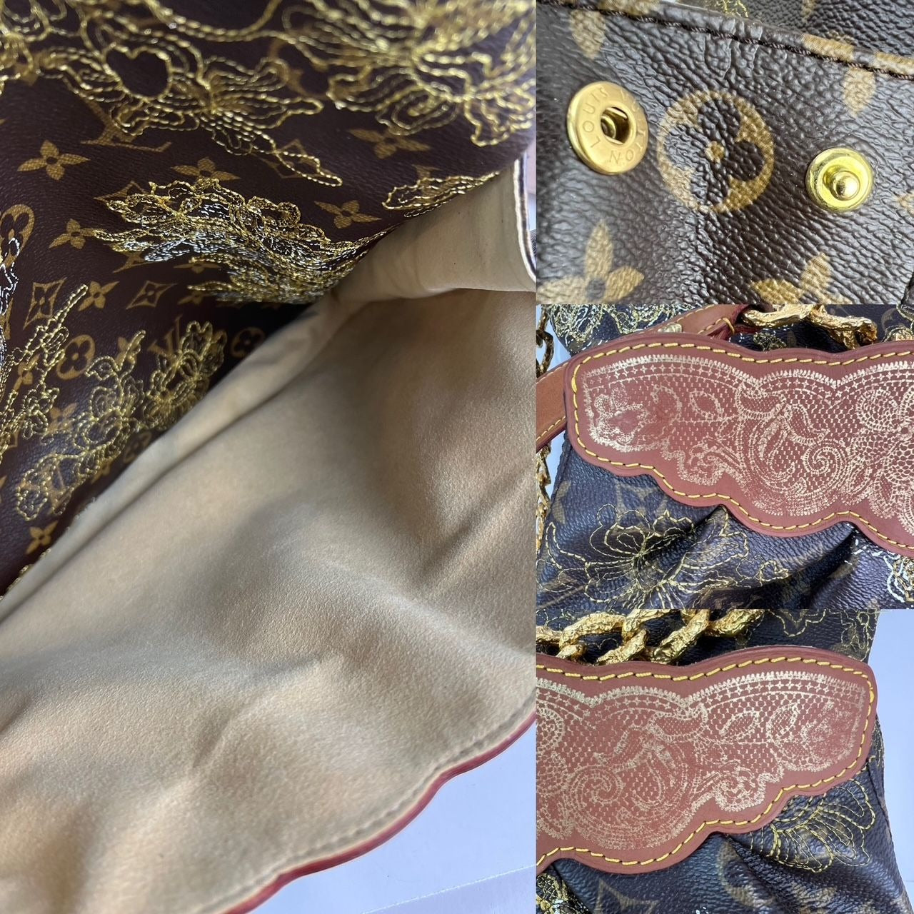 MATERIAL: monogram canvas, fine embroidered gold lace pattern