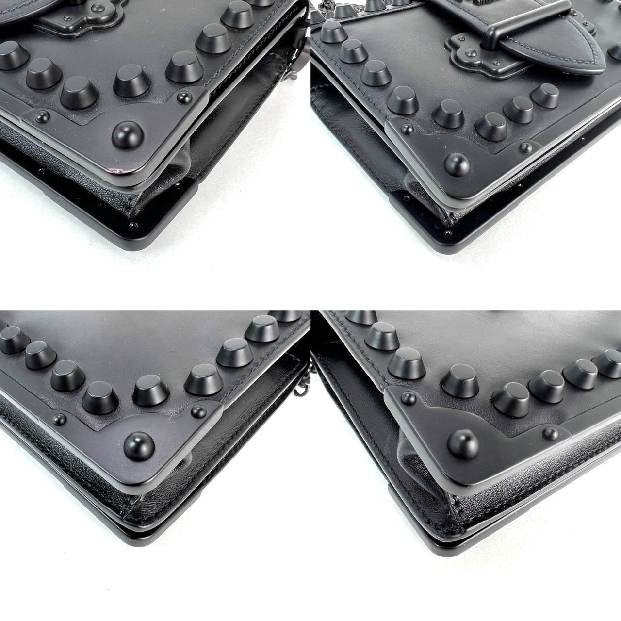 Prada City Calfskin Saffiano Studded Cahier Crossbody Clutch Bag Black