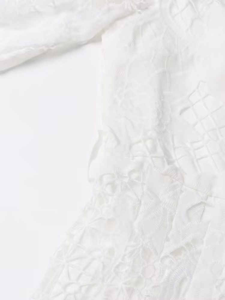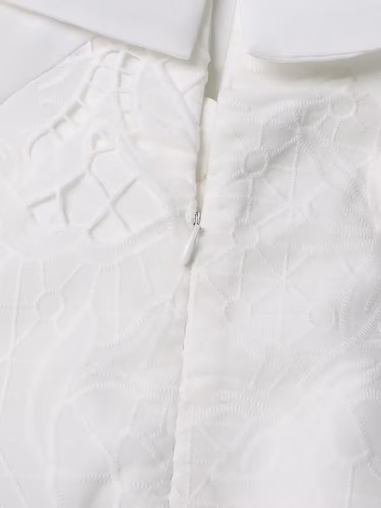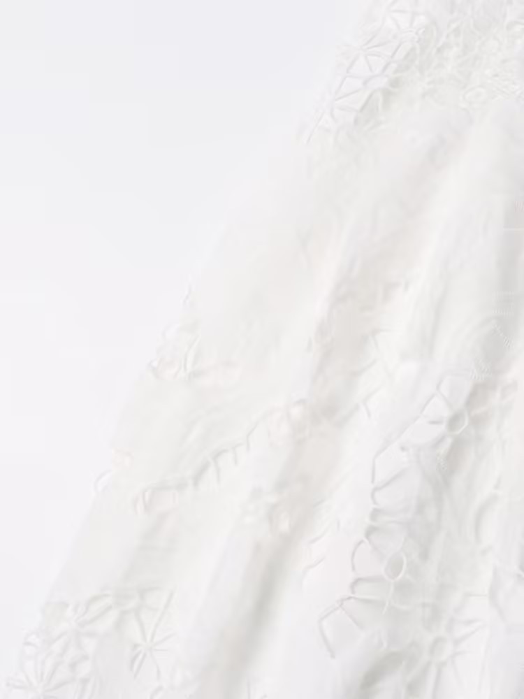 Retro Autumn Mid Length with Embroidery Hollow Out Cutout Dress