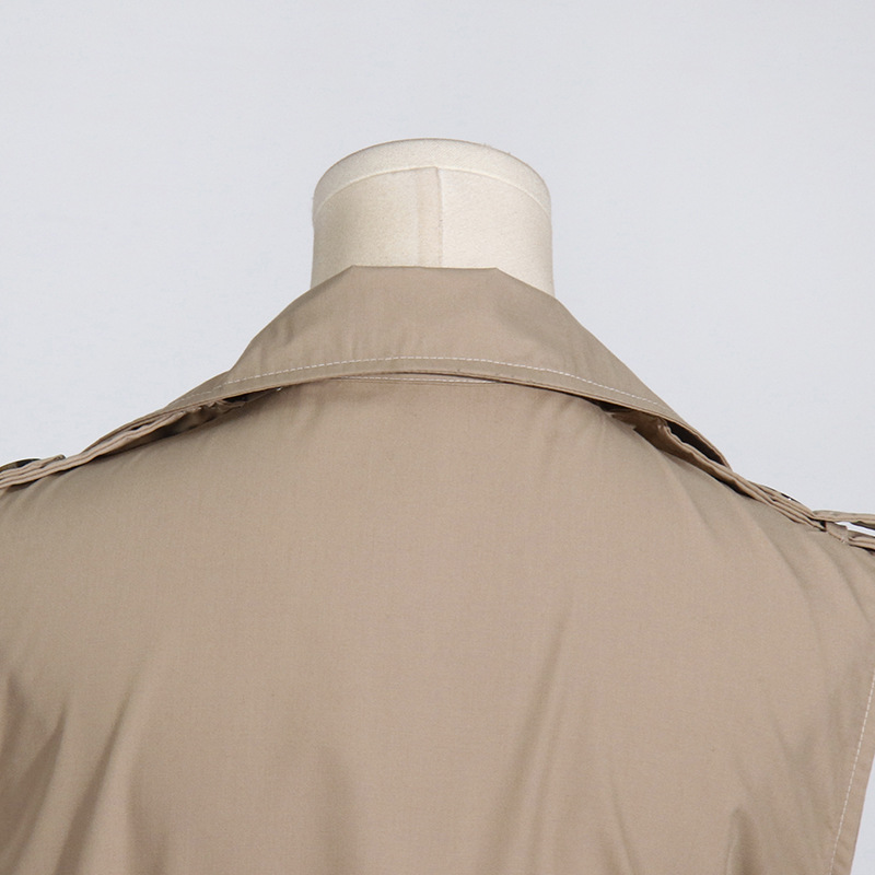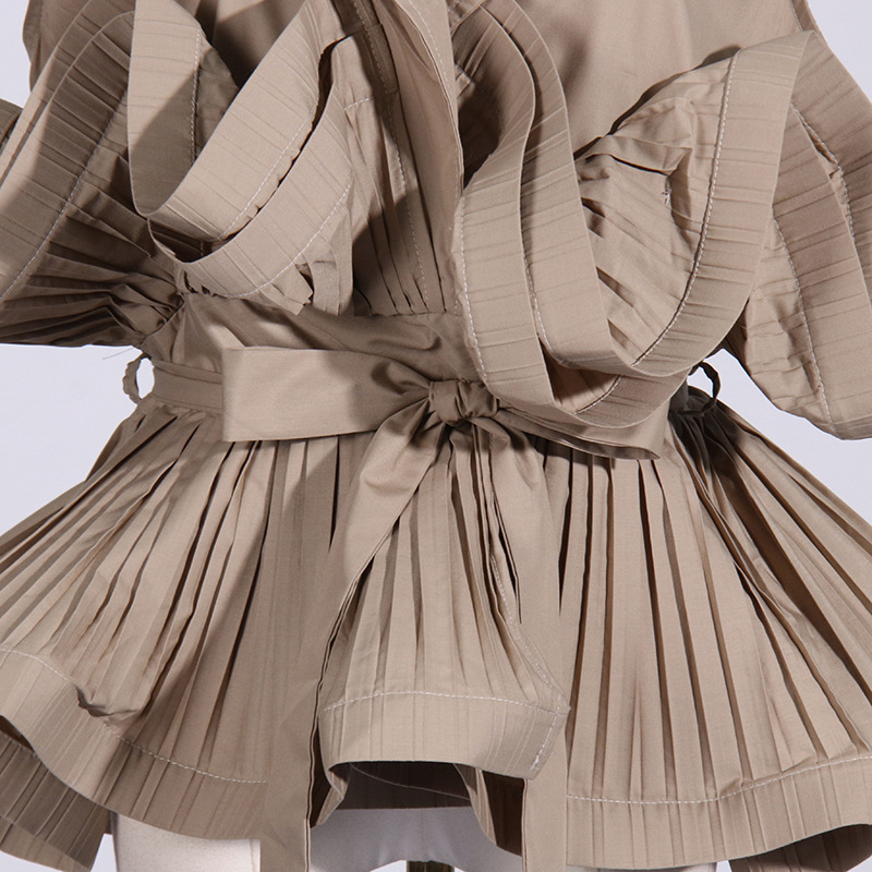 Khaki Lapel Collar Ruffle Top