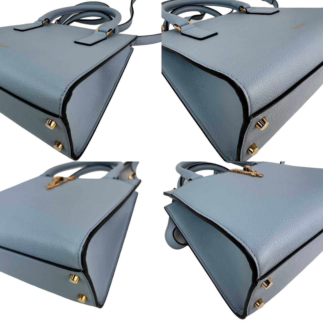 Versace Virtus Top Handle Grained Calfskin Light Blue Tote